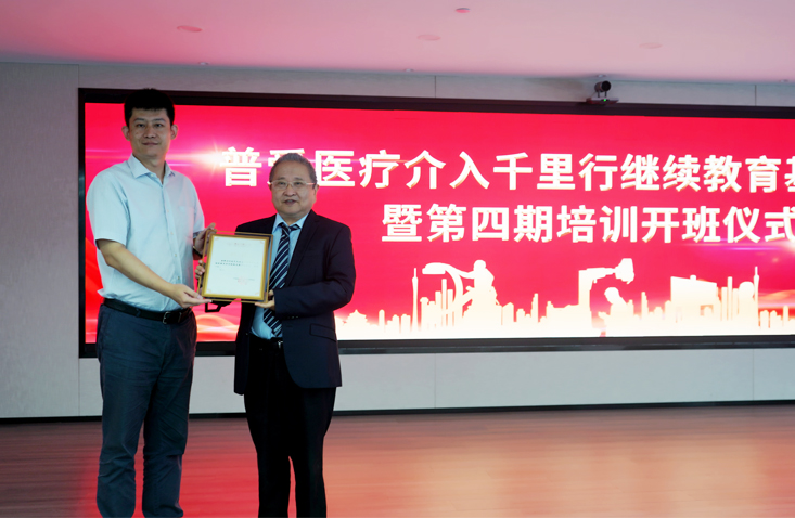 第四期介入培訓班,新加入了中國藥科大學,現(xiàn)由我司與中國藥科大學和南京市第一醫(yī)院三方聯(lián)合辦學,本期介入培訓班邀請到了南京市第一醫(yī)院顧建平教授、中國藥科大學繼續(xù)教育學院張永澤院長等領(lǐng)導出席本次開班儀式。中國藥科大學院方領(lǐng)導為我司董事長劉金虎先生頒發(fā)了“中國藥科大學繼續(xù)教育學院戰(zhàn)略發(fā)展專家”聘書,并為我司舉行了“中國藥科大學繼續(xù)教育現(xiàn)場教學基地”揭牌儀式。