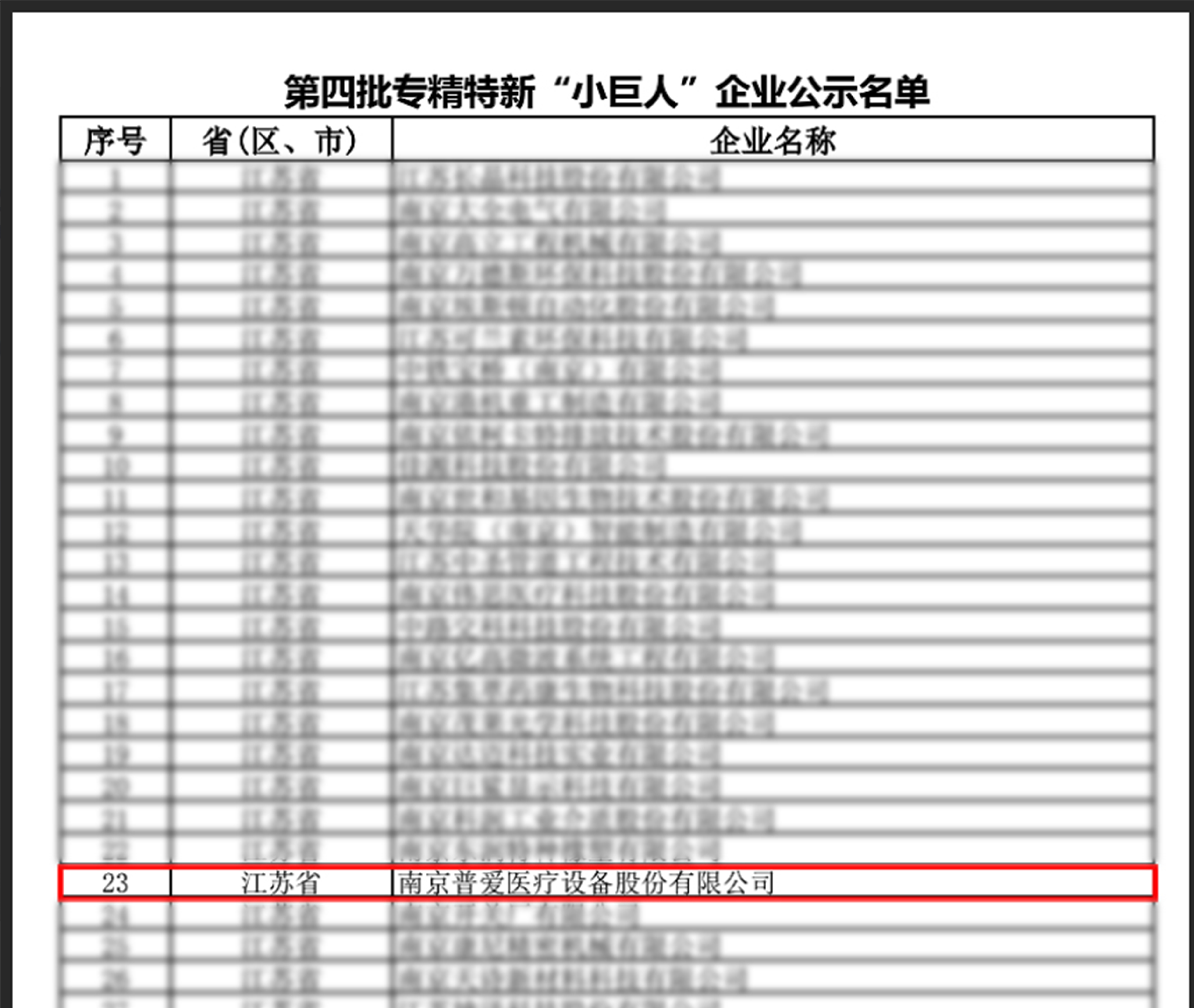 近日,國家工業(yè)和信息化部完成對第四批專精特新“小巨人”企業(yè)培育的審核與名單公示,南京普愛醫(yī)療設(shè)備股份有限公司成功入選。