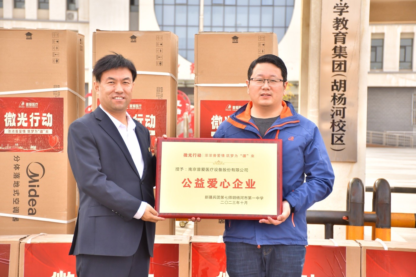 胡楊河市第一中學(xué)授予普愛醫(yī)療“公益愛心企業(yè)”稱號(hào)