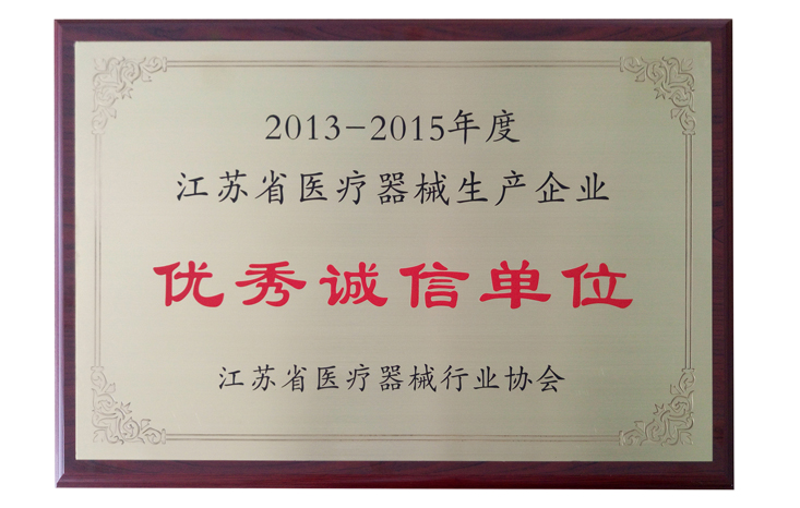 普愛醫(yī)療榮獲2013-2015年度江蘇省醫(yī)療器械生產(chǎn)企業(yè)“優(yōu)秀誠信單位”的稱號!