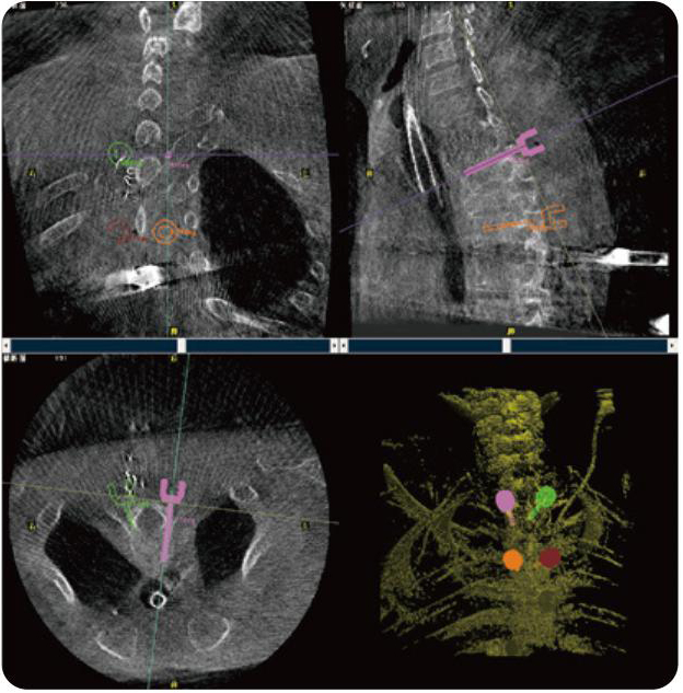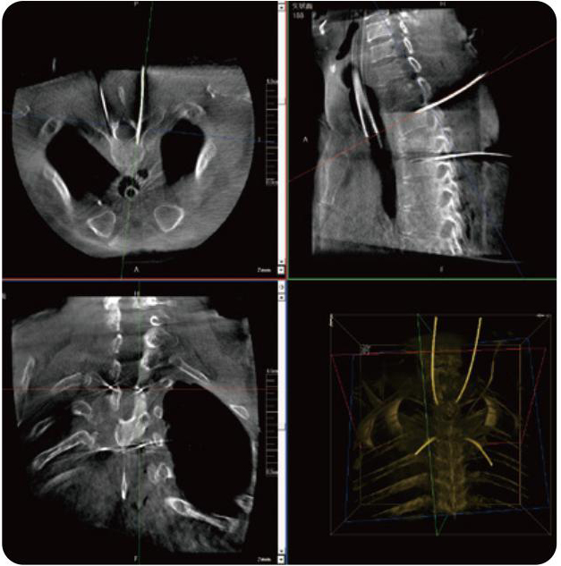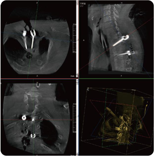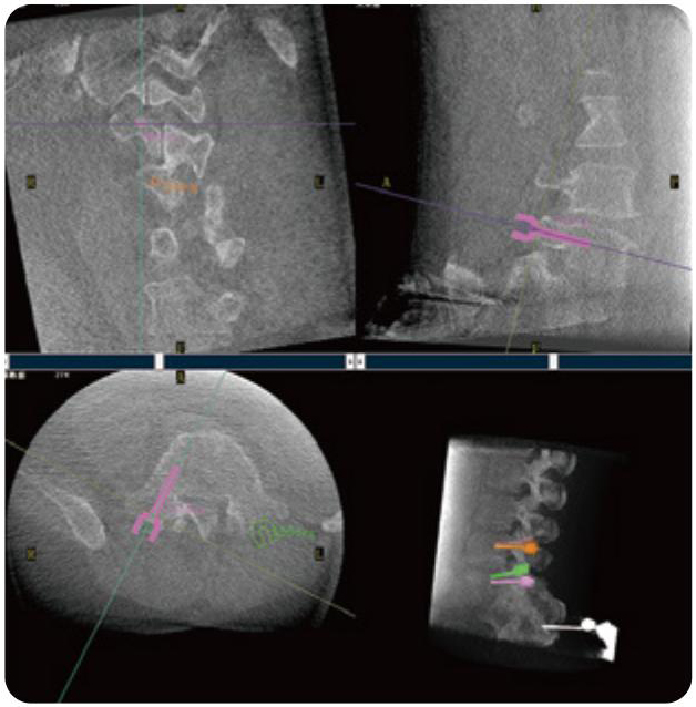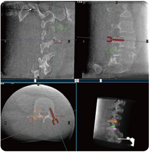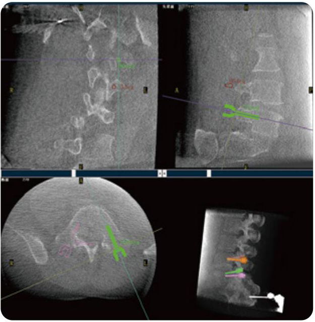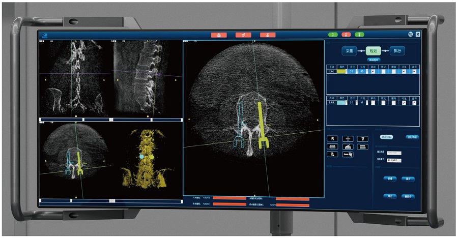 PL300B可應(yīng)用于多節(jié)段脊柱外科手術(shù),輔助醫(yī)生定位病灶部位,為脊柱外科手術(shù)(經(jīng)皮椎體成形術(shù)、椎弓根螺釘內(nèi)固定術(shù)等術(shù)式)提供術(shù)前手術(shù)流程規(guī)劃、入釘位置、角度可視化引導(dǎo),模擬仿真入釘輔助。